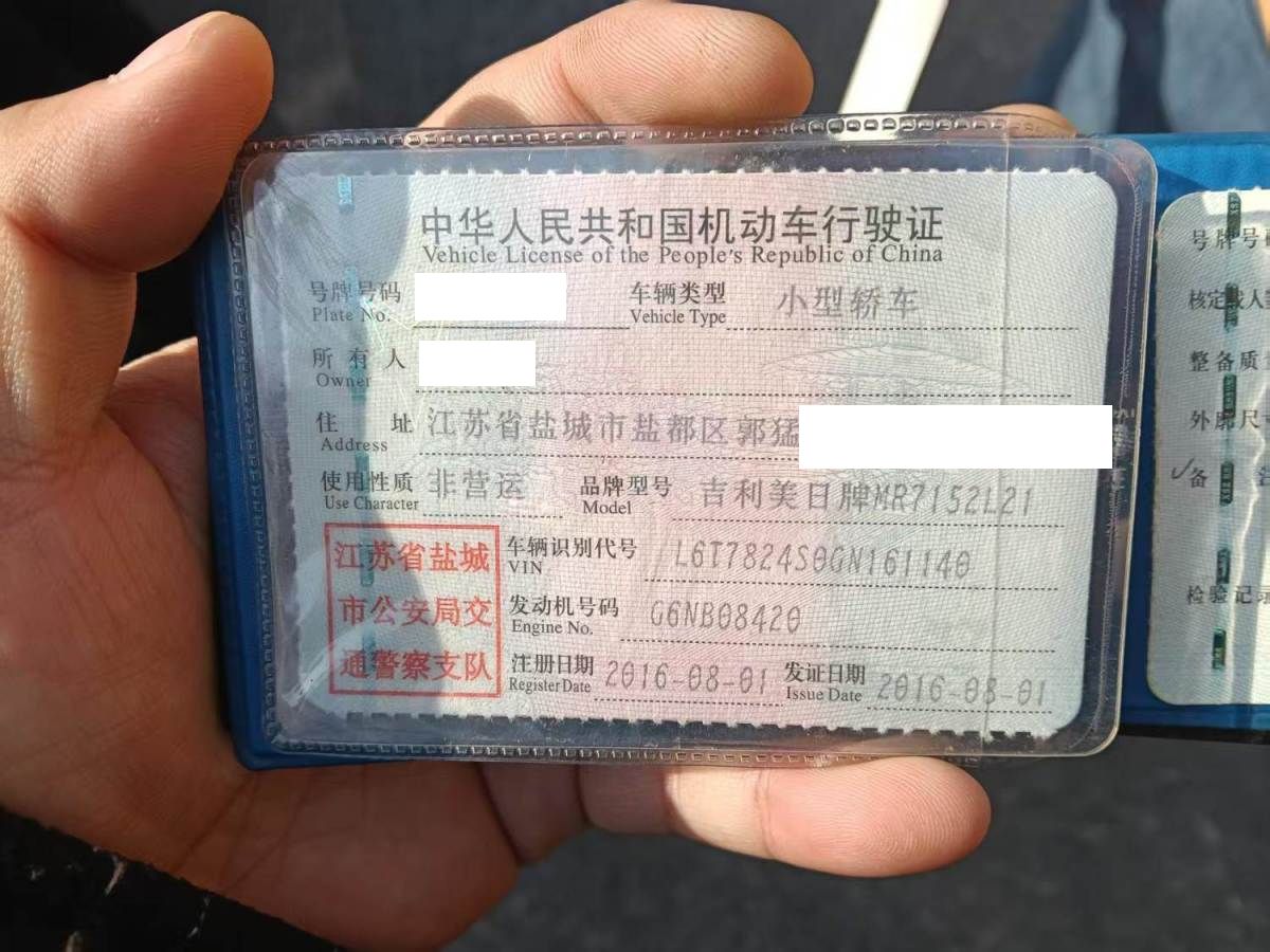 初次登记日期 2016-08-01 车辆名称 吉利汽车 帝豪