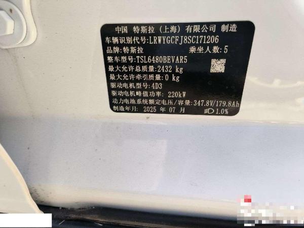 初次登记日期 2025-07-26 车辆名称 特斯拉 Model