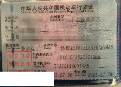车牌号 京****** 品牌 特斯拉