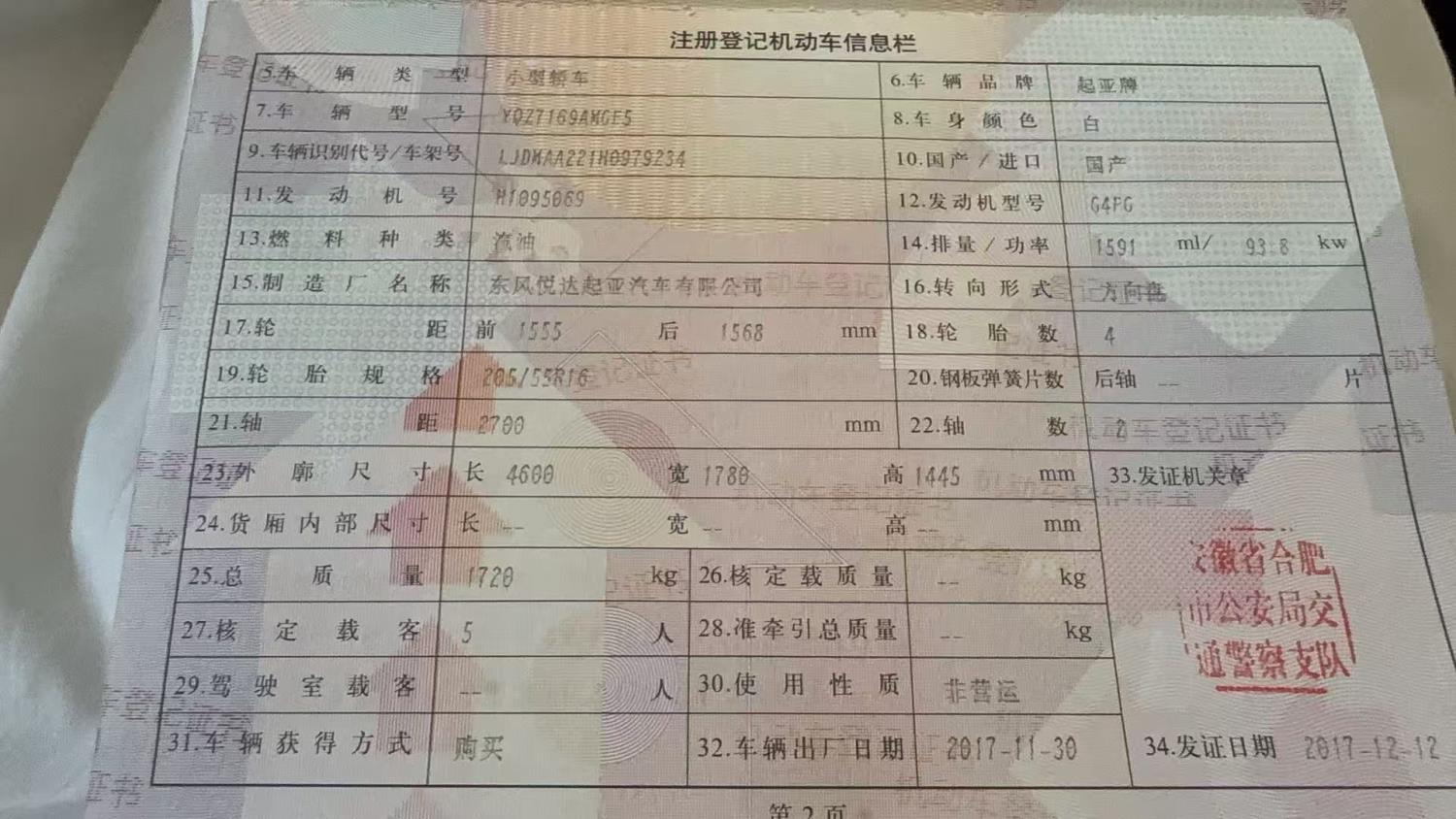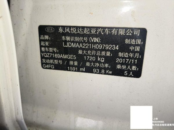 初次登记日期 2017-12-12 车辆名称 起亚K3
