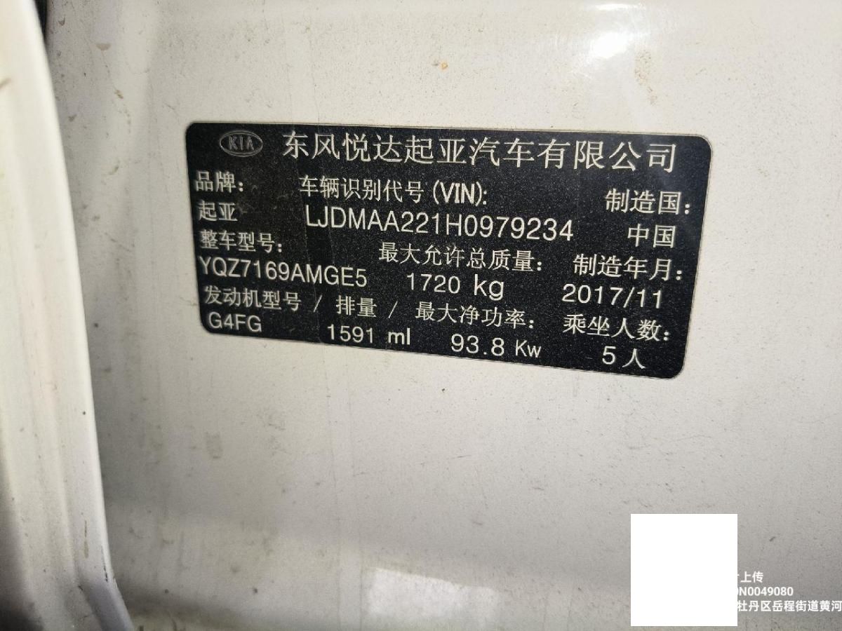 车牌号 鲁****** 品牌 起亚