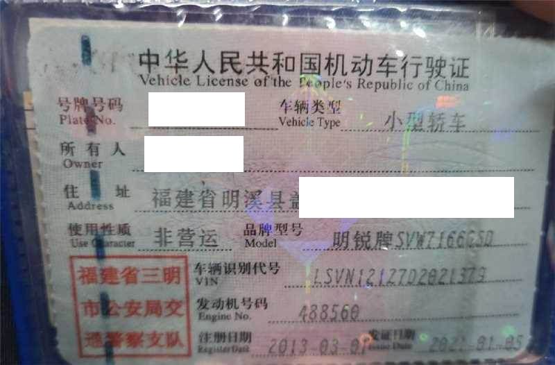 车辆归属地 福建省三明市 车辆停放仓库 福建省三明市三明市