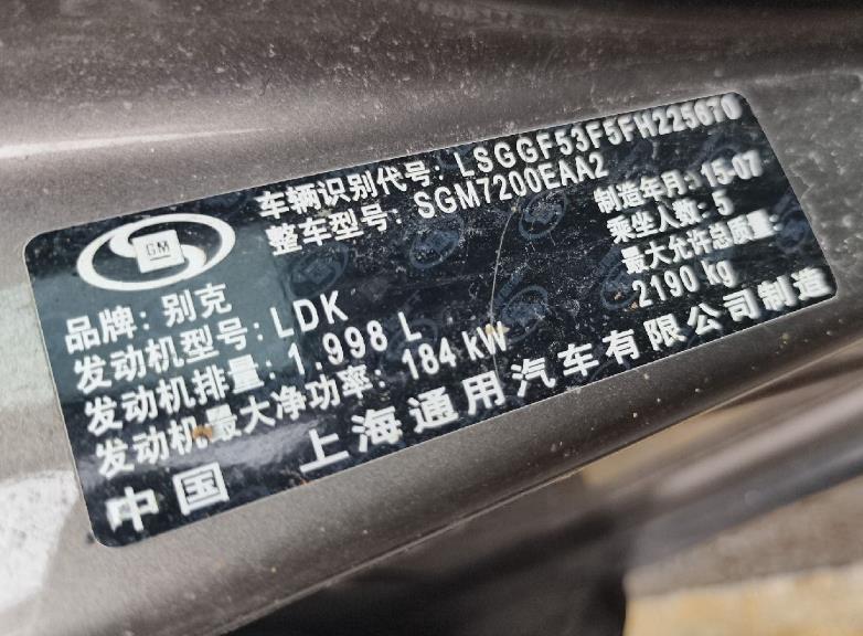 初次登记日期 2015-10-21 车辆名称 别克 君越