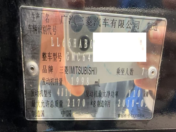 初次登记日期 2018-06-26 车辆名称 三菱 欧蓝德