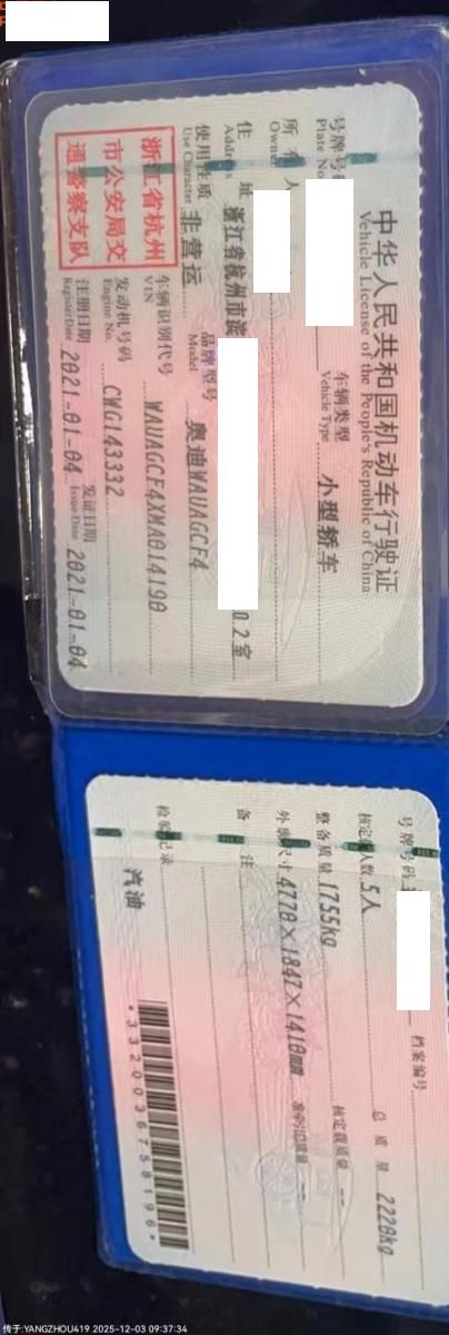 车牌号 浙****** 品牌 奥迪
