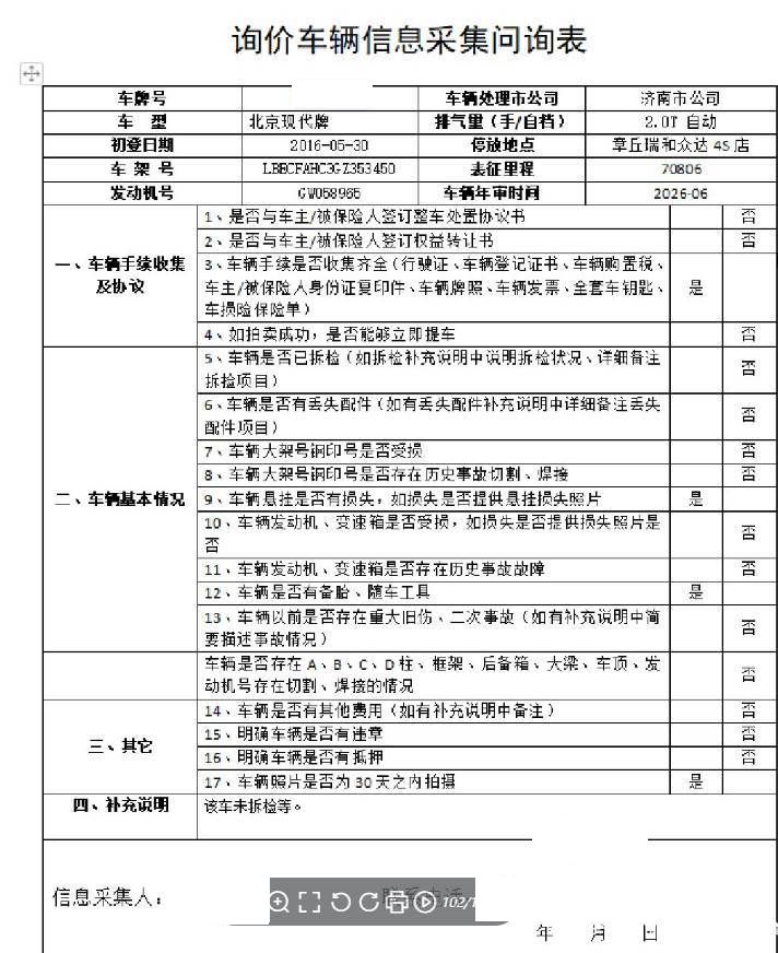 车架号是否受损 未知 使用性质 非营运