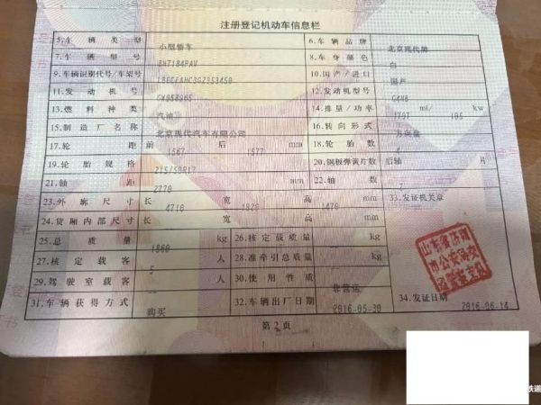 初次登记日期 2016-05-30 车辆名称 现代 名图