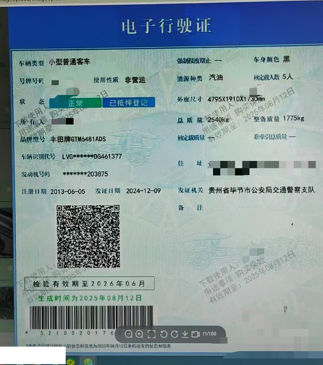 车牌号 贵****** 品牌 丰田
