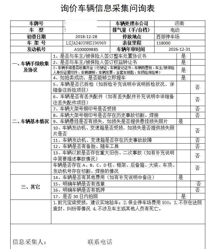 1.前元宝梁受损,建议实地验车;3.不存在法院查封、纠纷等情况 4.不涉及车主或其他人员有死亡。 5年以上车辆报价后不得以二次事故为由提出议价或退车弃标。