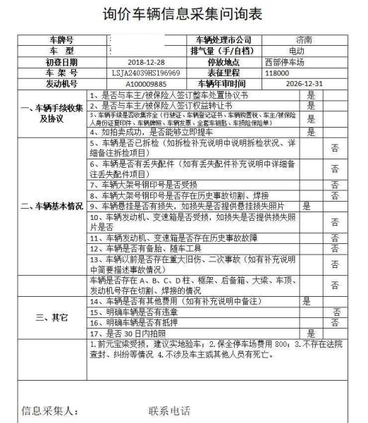 车架号是否受损 使用性质 非营运