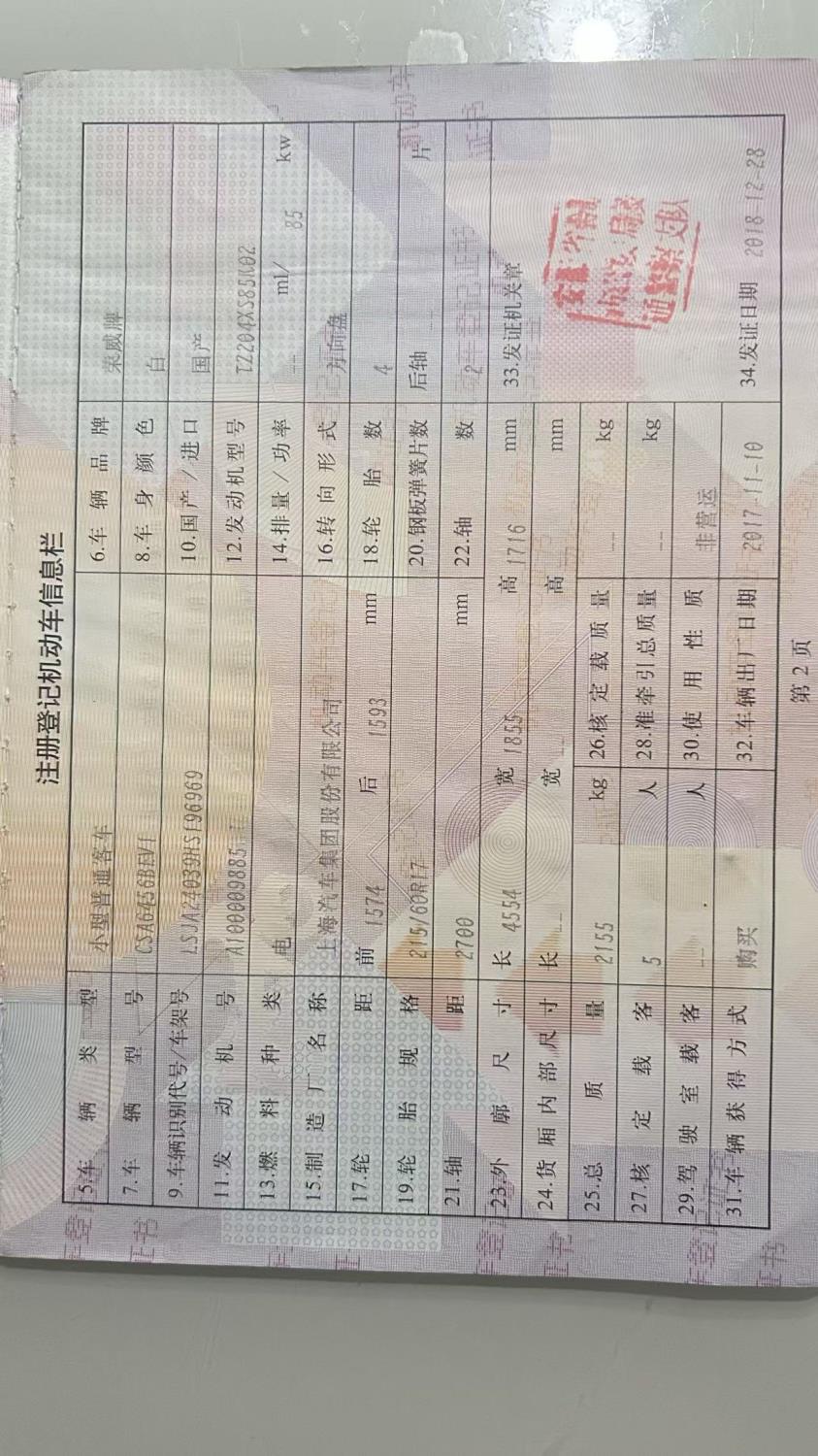 初次登记日期 2017-11-10 车辆名称 荣威牌