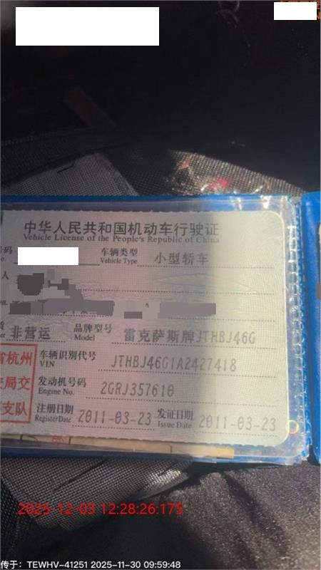 初次登记日期 2011-03-23 车辆名称 雷克萨斯ES