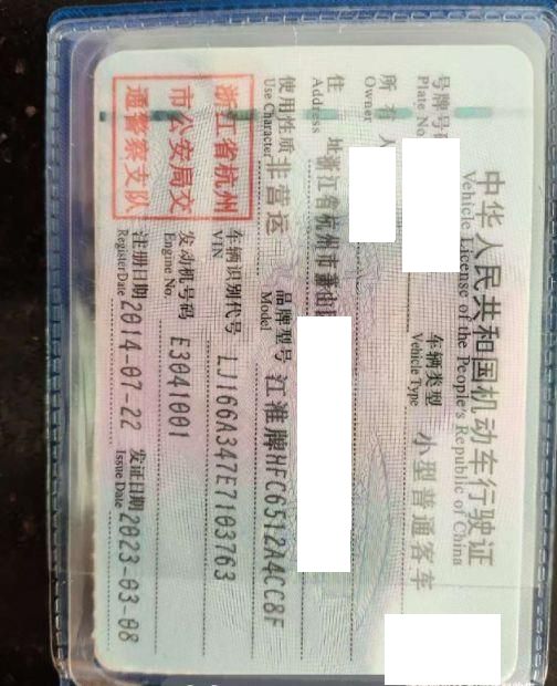 车牌号 浙****** 品牌 江淮