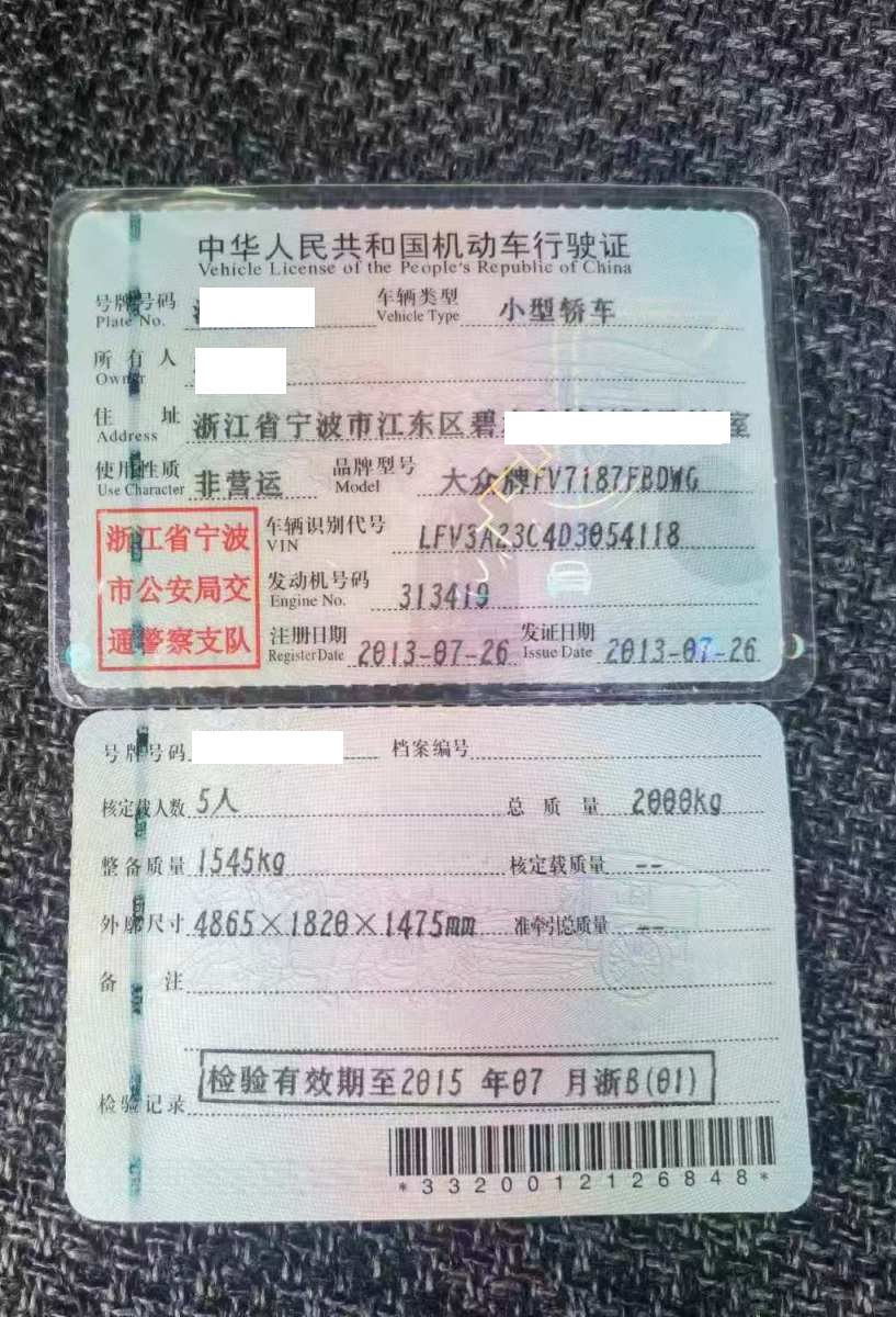 初次登记日期 2013-07-26 车辆名称 大众 迈腾