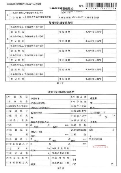 车架号是否受损 未知 使用性质 非营运