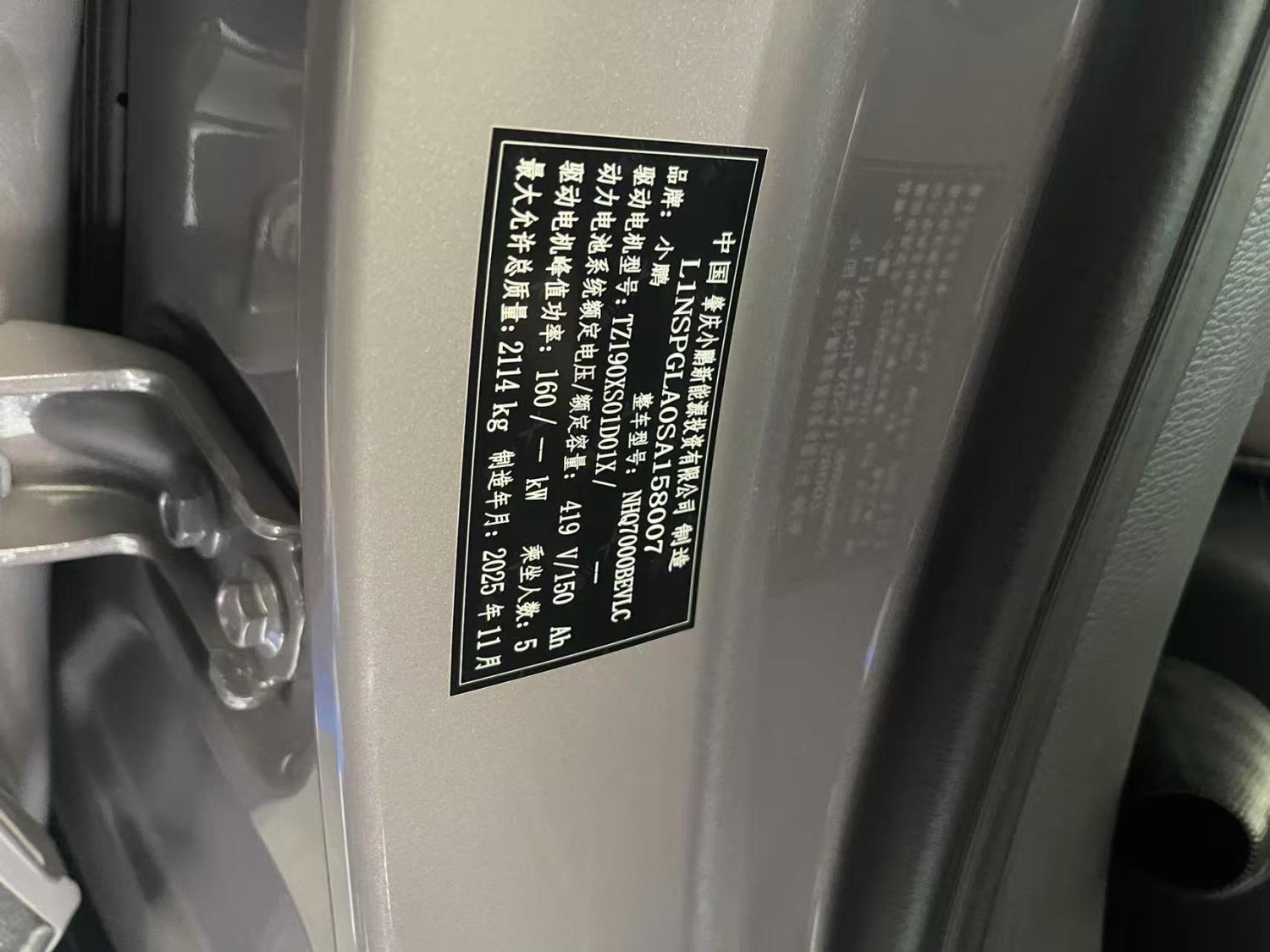 初次登记日期 2025-11-24 车辆名称 小鹏牌