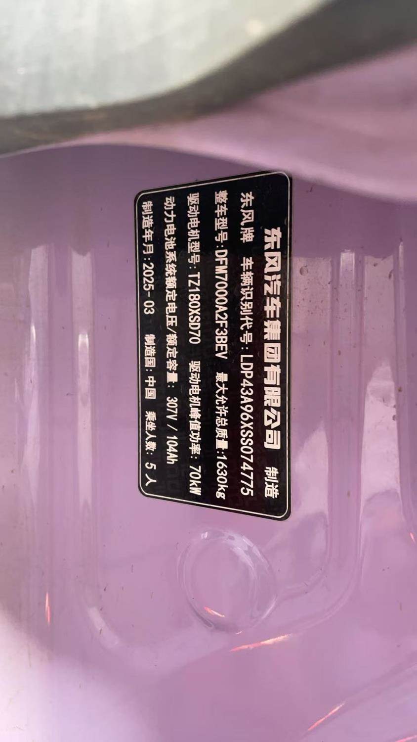 初次登记日期 2025-03-20 车辆名称 东风纳米