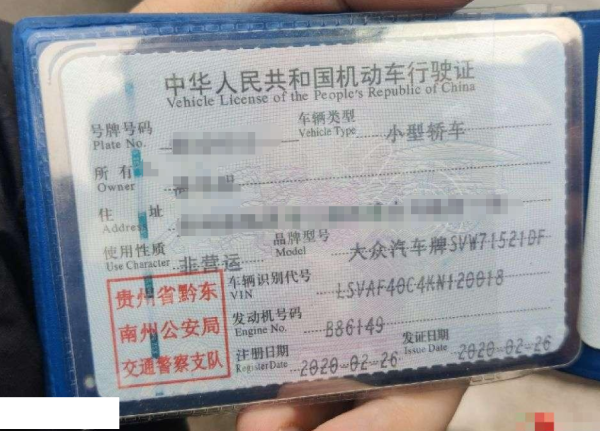 车辆归属地 贵州省黔南州市 车辆停放仓库 贵州省黔南州市