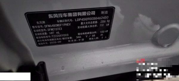 初次登记日期 2025-10-14 车辆名称 东风风神