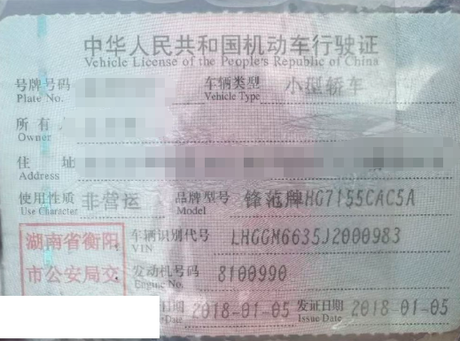 初次登记日期 2018-01-05 车辆名称 本田 锋范