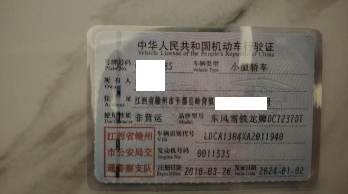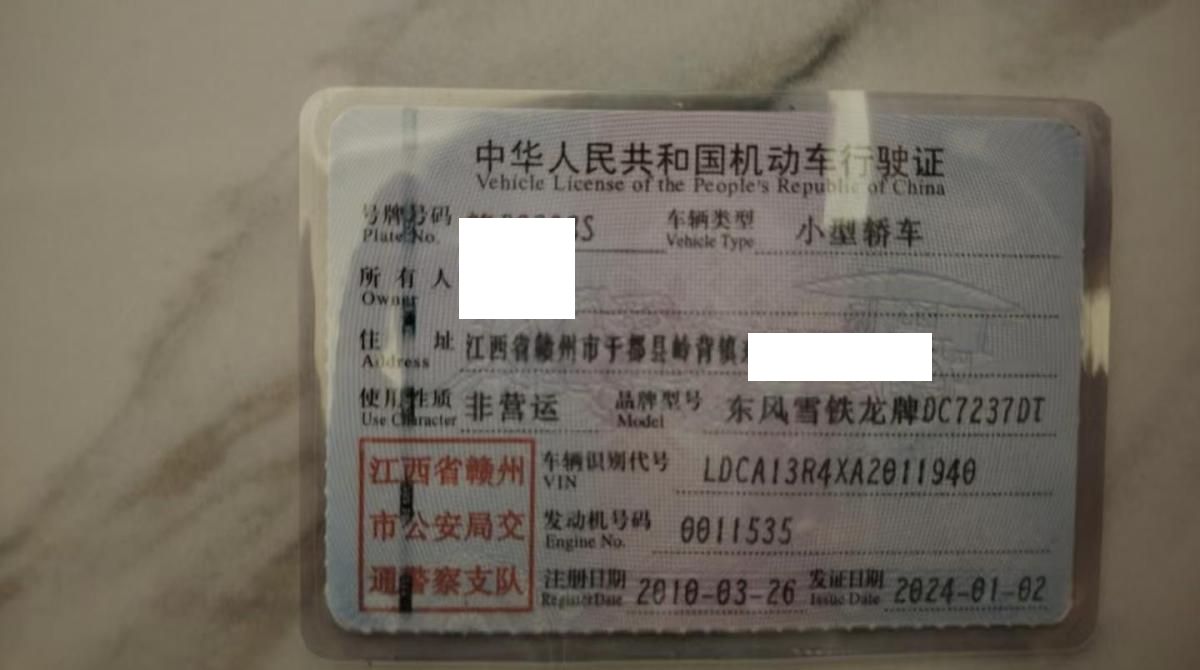 车辆归属地 江西省赣州市 车辆停放仓库 广东省惠州市惠州市