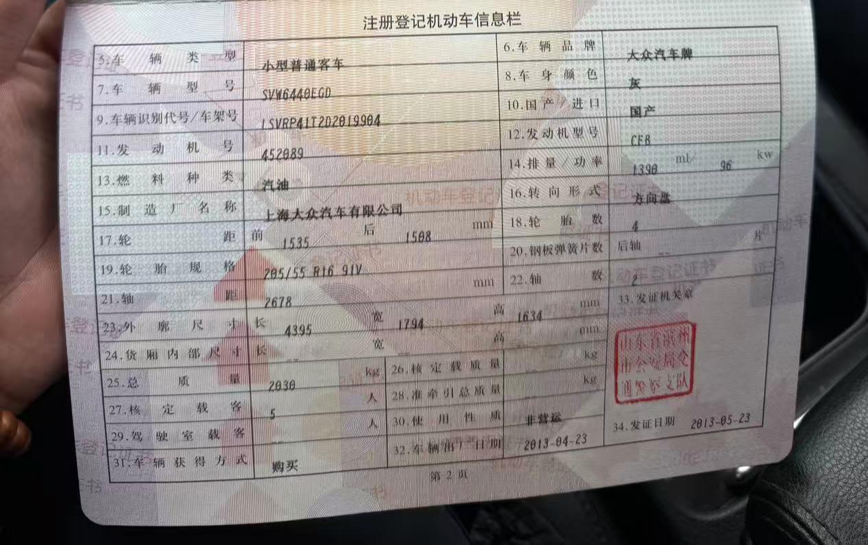 车牌号 鲁****** 品牌 大众
