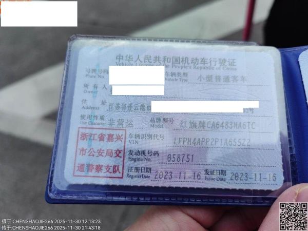 车牌号 浙****** 品牌 红旗