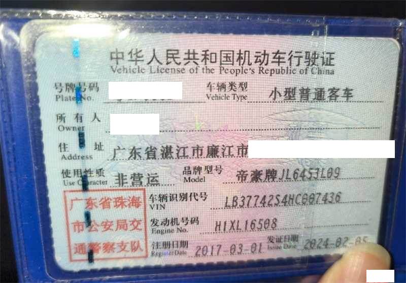 车牌号 粤****** 品牌 吉利
