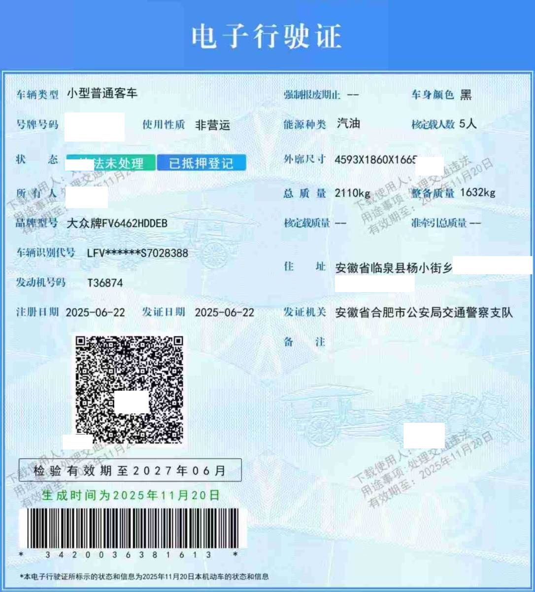 车牌号 皖****** 品牌 大众