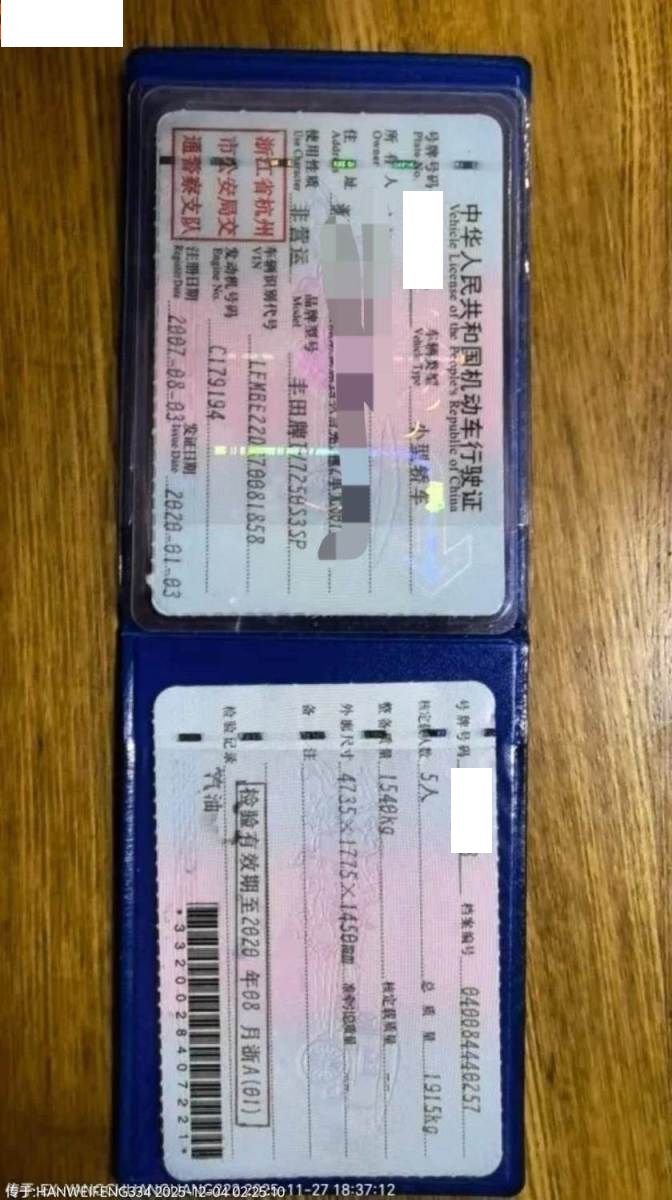 车牌号 浙****** 品牌 丰田