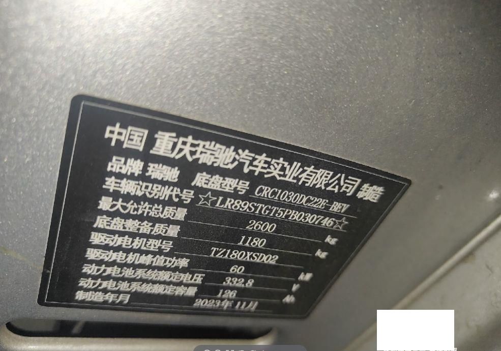 初次登记日期 2024-04-10 车辆名称 瑞驰汽车