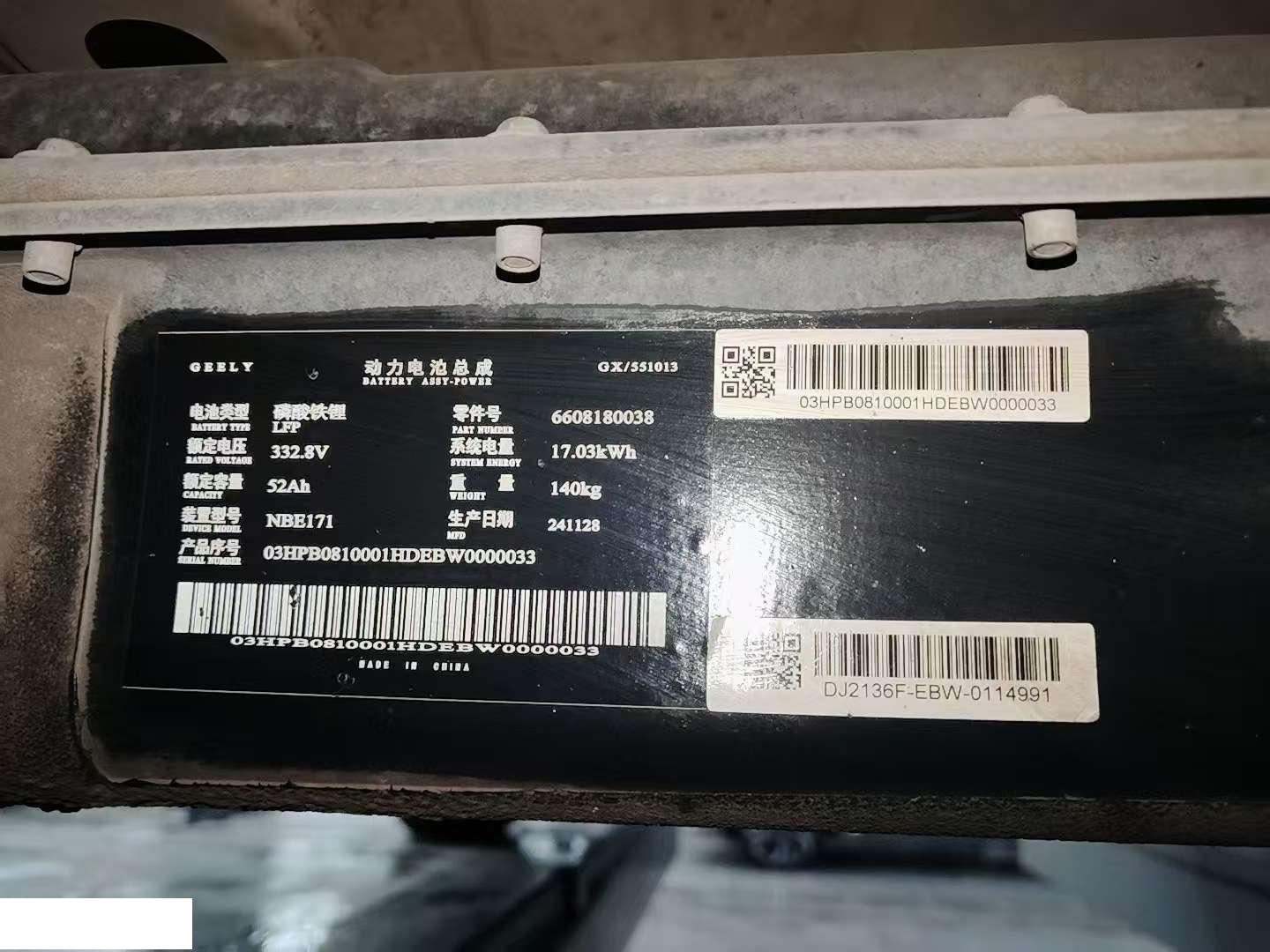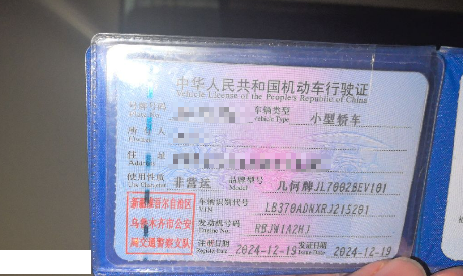 初次登记日期 2024-12-19 车辆名称 吉利银河 熊猫