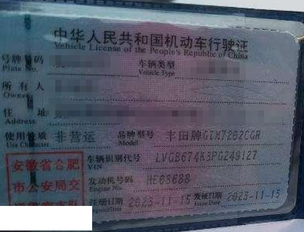 车辆归属地 安徽省合肥 车辆停放仓库 安徽省合肥