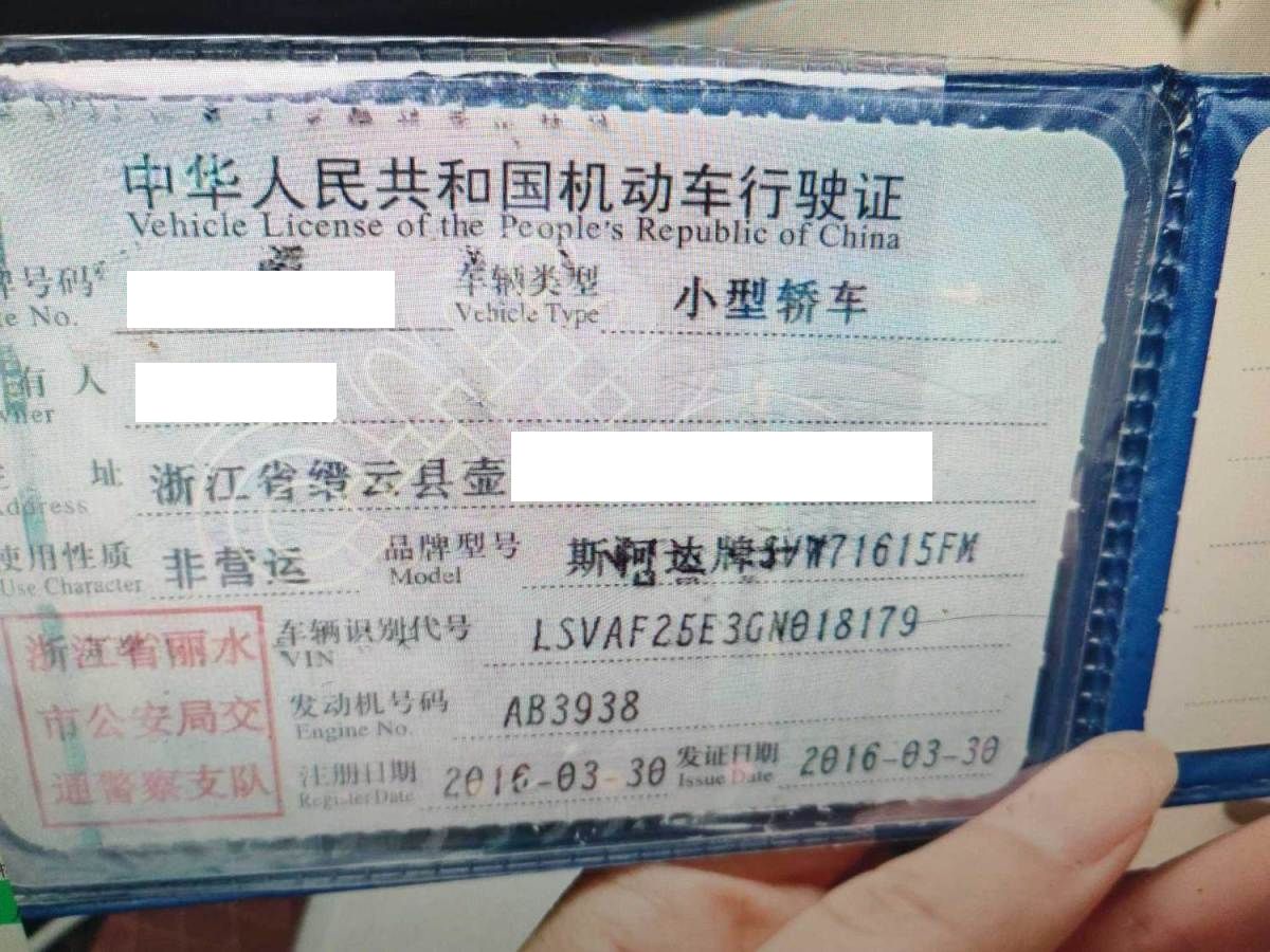 车牌号 浙****** 品牌 斯柯达