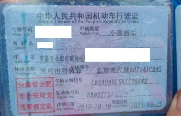 车辆归属地 安徽省合肥市 车辆停放仓库 安徽省合肥市