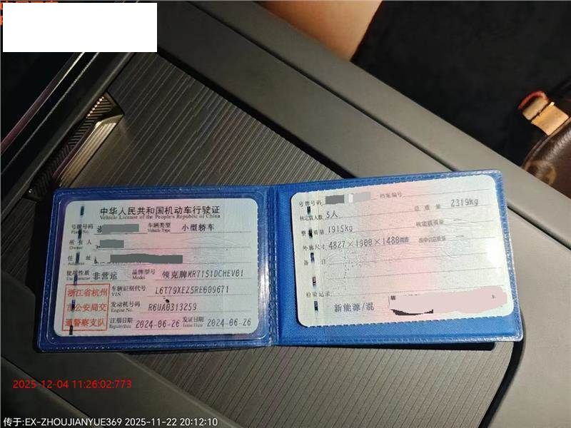 初次登记日期 2024-06-26 车辆名称 领克牌