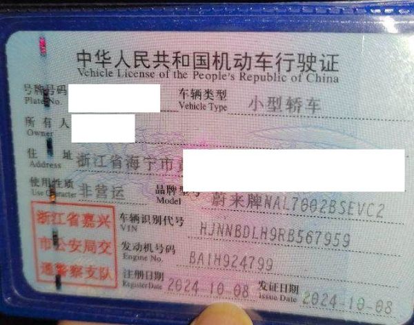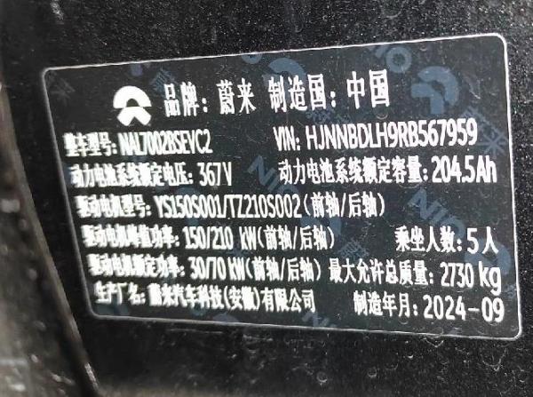 初次登记日期 2024-10-08 车辆名称 蔚来牌