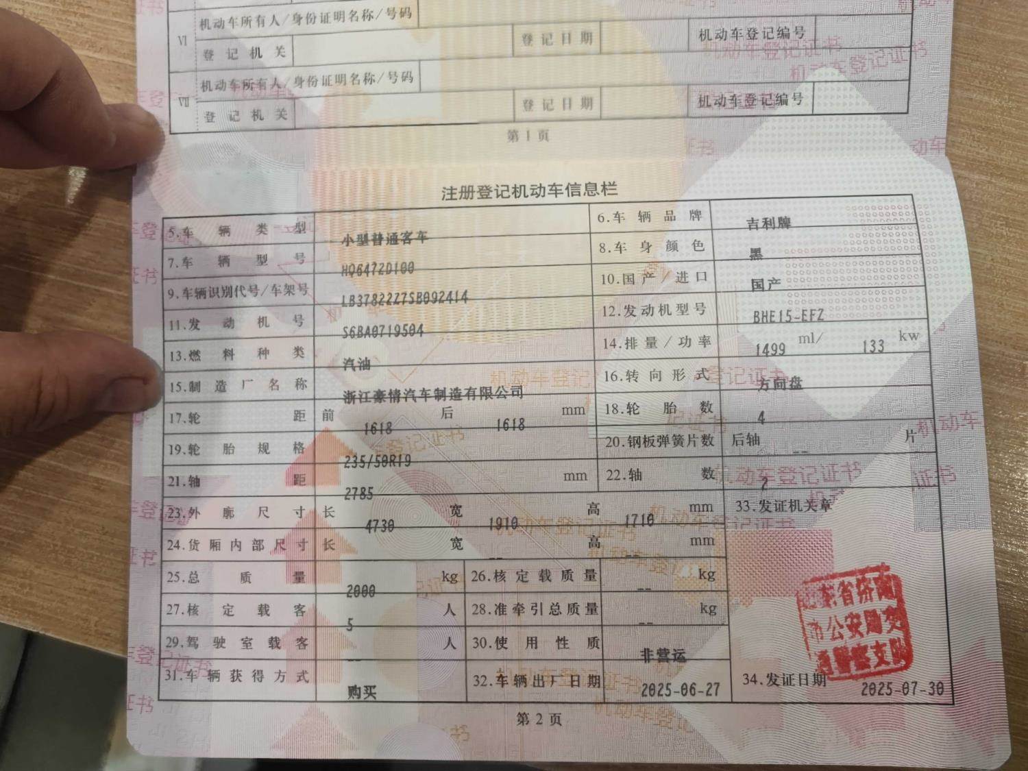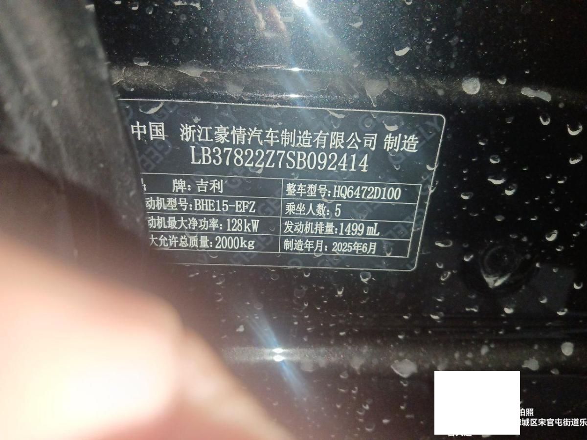 初次登记日期 2025-07-30 车辆名称 吉利汽车 博越L