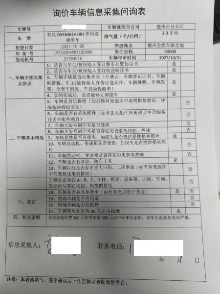 车架号是否受损 使用性质 非营运