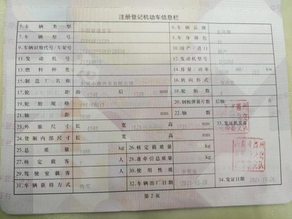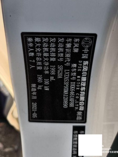 初次登记日期 2021-10-26 车辆名称 东风风光 风光S560