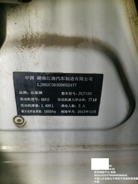 车牌号 鲁****** 品牌 众泰