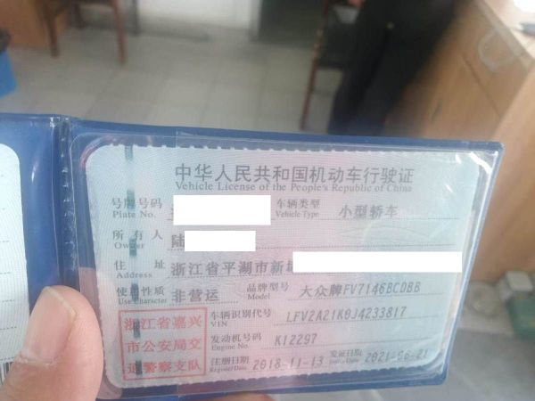 车辆归属地 浙江省嘉兴市 车辆停放仓库 上海市金山区金山区