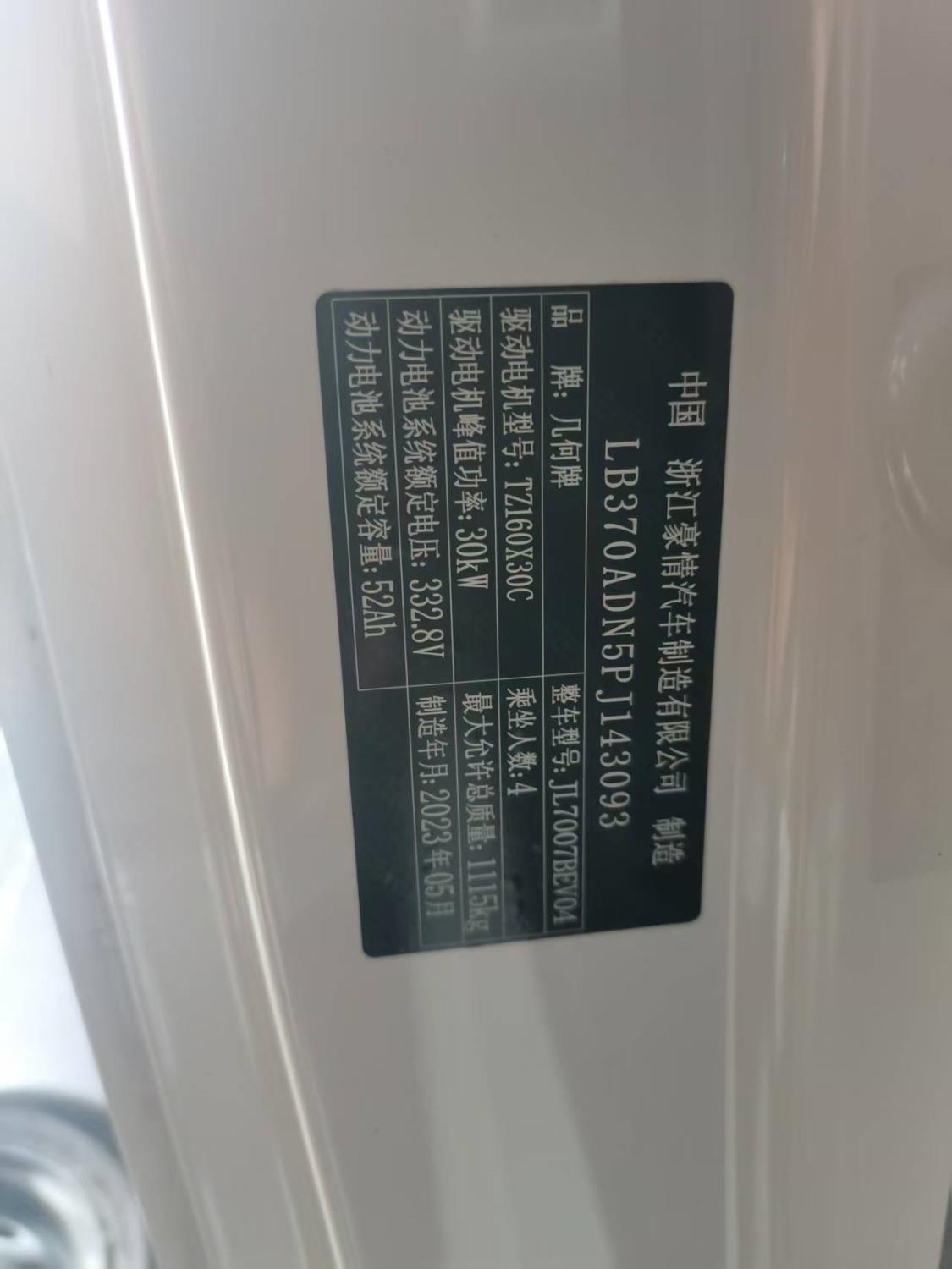底盘号码 LB370ADN5PJ143093 变速箱类型 自动