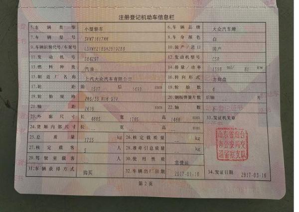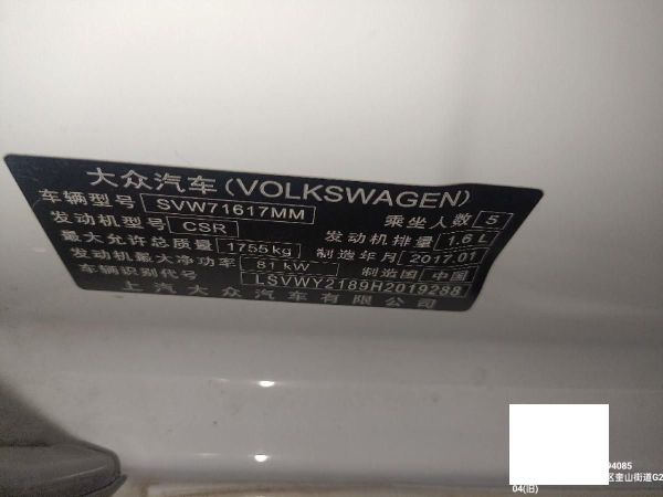 初次登记日期 2017-01-10 车辆名称 大众 朗逸