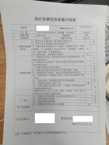 无改装无抵押车架号未变性 5年以上车辆报价后不得以二次事故为由提出议价或退车弃标。