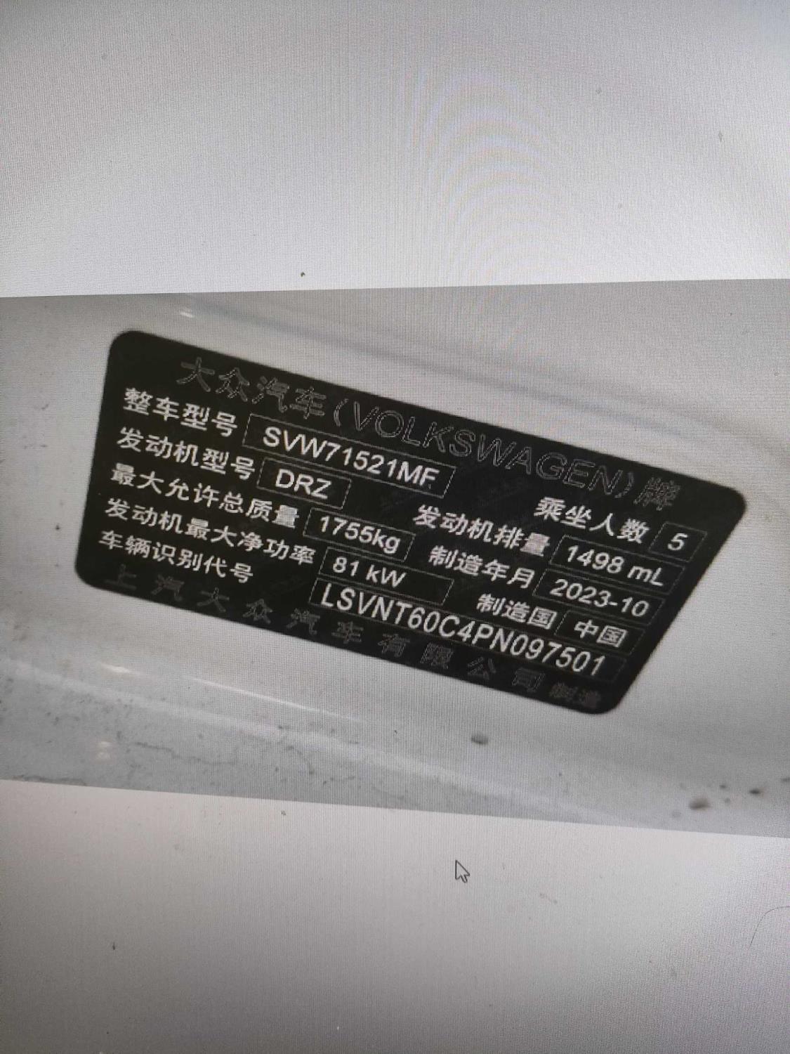 初次登记日期 2024-01-12 车辆名称 大众 朗逸