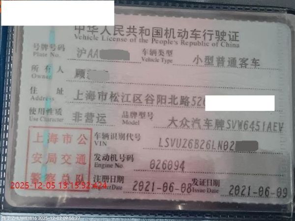 车牌号 沪****** 品牌 大众