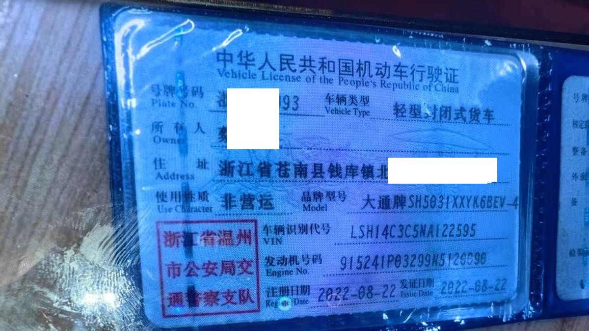 车辆归属地 浙江省温州市 车辆停放仓库 浙江省温州市温州市