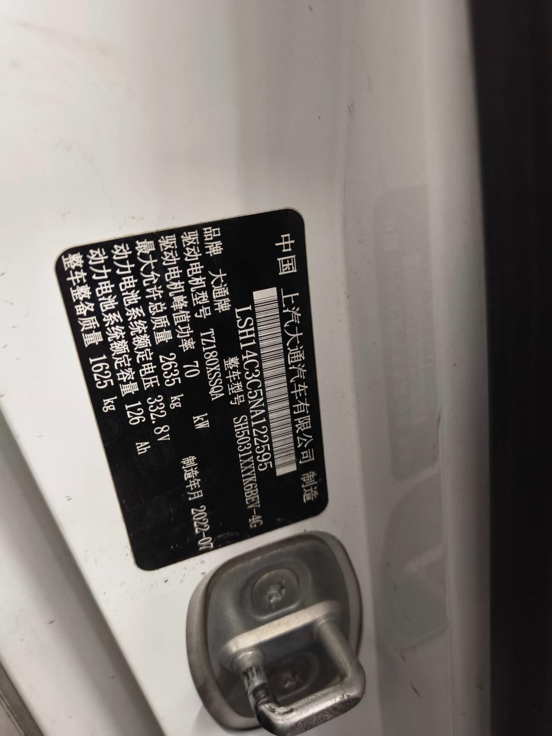 初次登记日期 2022-08-22 车辆名称 上汽大通MAXUS