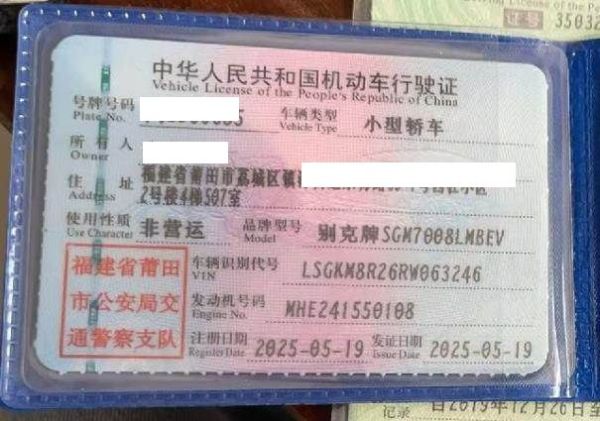 初次登记日期 2025-05-19 车辆名称 别克 微蓝